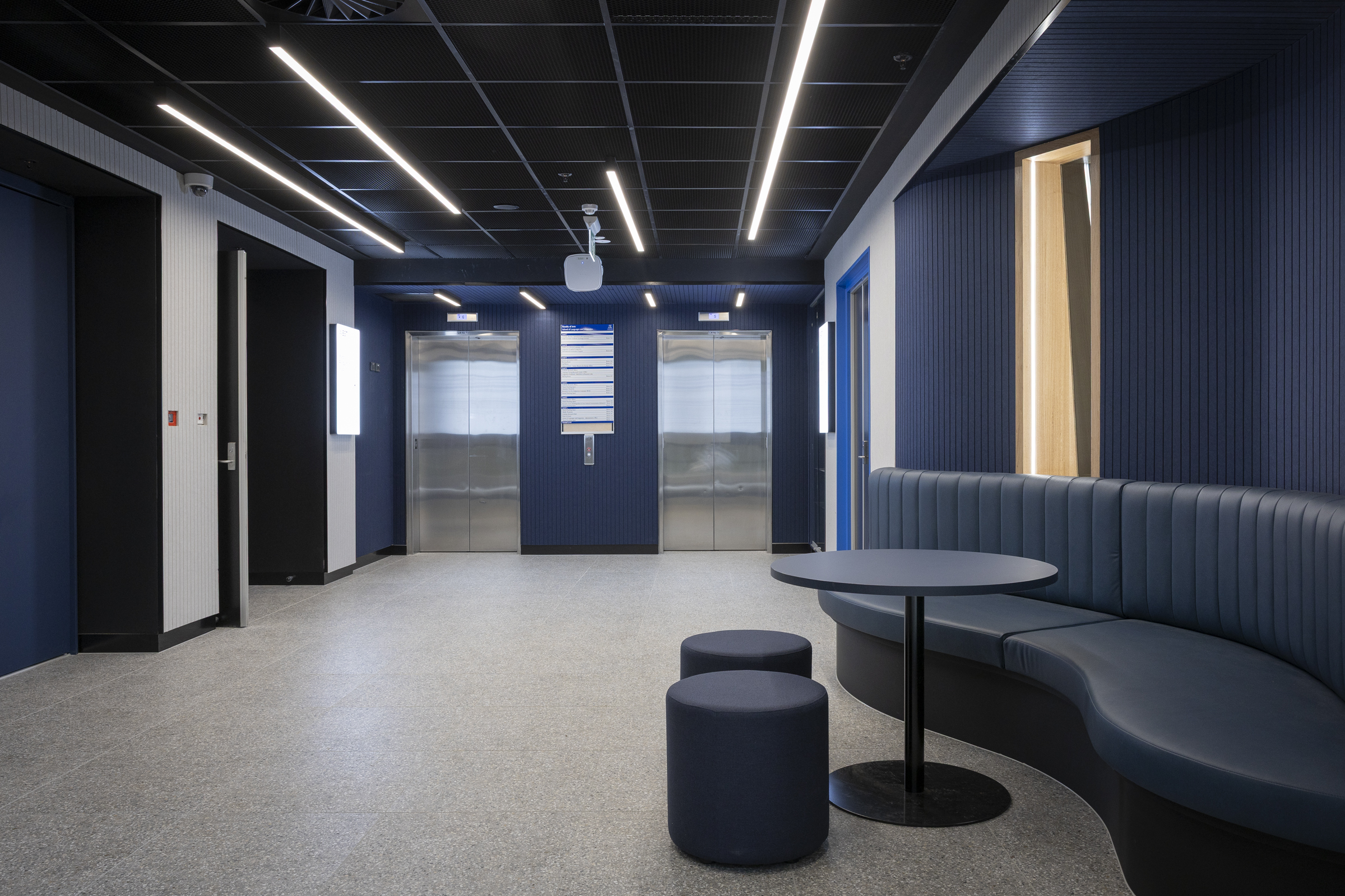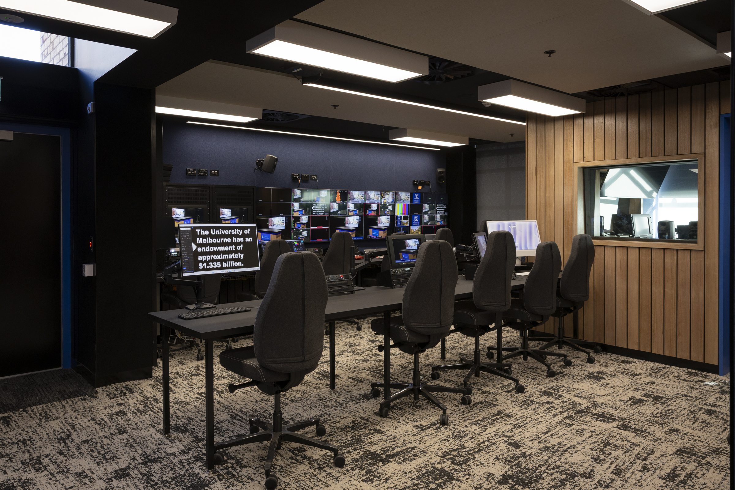 The space itself was fit out into a state-of-the-art TV and audio studio with acoustics forefront of mind. This included detailed wall types between all rooms as well as special acoustic panel and wall linings. The spaces were then fit out with brand-new audio-visual equipment to provide the new users with maximum output.